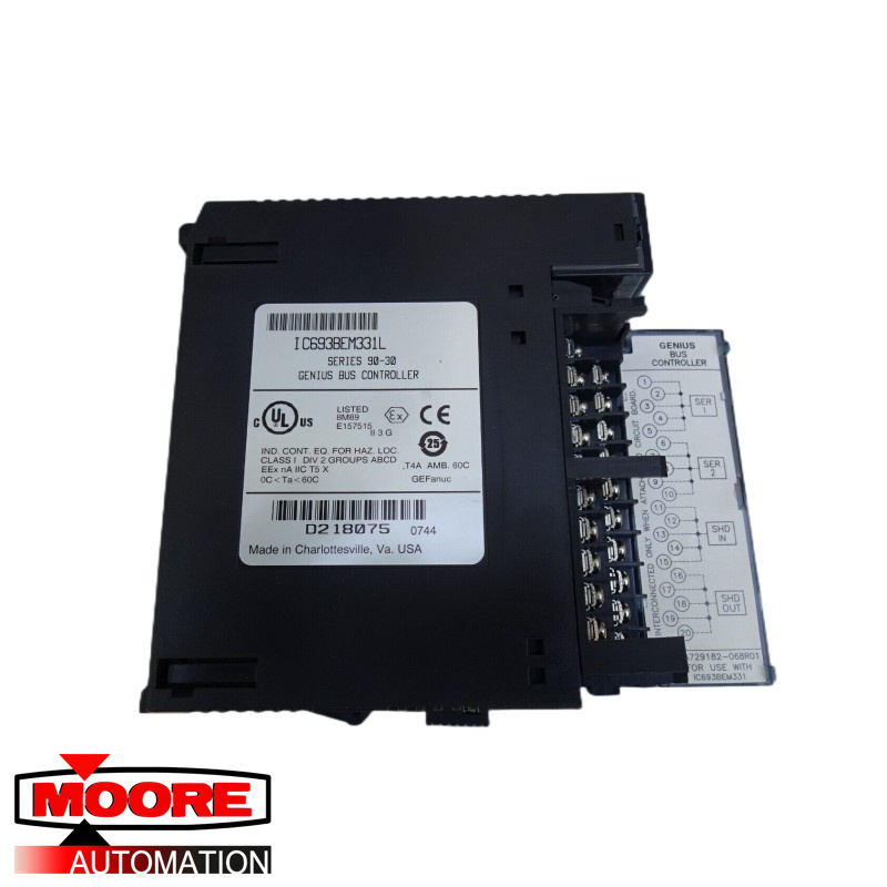 The Series 90-30 Genius Bus Controller (GBC), catalog number IC693BEM331, provides the interface between a Series 90-30 PLC and a Genius I/O serial bus. The GBC receives and transmits control data of up to 128 bytes for up to 31 devices on the Genius I/O bus. A Genius Bus Controller can serve: